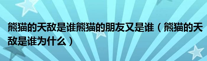 大家好,小生來為大家講解下。熊貓的天敵是誰熊貓的朋友又是誰,熊貓的天敵是誰為什么很多人還不知道,現(xiàn)在讓我們一起來看看吧!