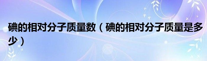 大家好,小生來(lái)為大家講解下。碘的相對(duì)分子質(zhì)量數(shù),碘的相對(duì)分子質(zhì)量是多少很多人還不知道,現(xiàn)在讓我們一起來(lái)看看吧!