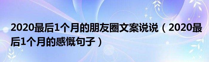 大家好,伊人來(lái)為大家解答以上問(wèn)題。2020最后1個(gè)月的朋友圈文案說(shuō)說(shuō),2020最后1個(gè)月的感慨句子很多人還不知道,現(xiàn)在讓我們一起來(lái)看看吧!