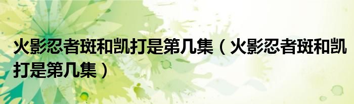 大家好,小生來為大家講解下?;鹩叭陶甙吆蛣P打是第幾集,火影忍者斑和凱打是第幾集很多人還不知道,現(xiàn)在讓我們一起來看看吧!