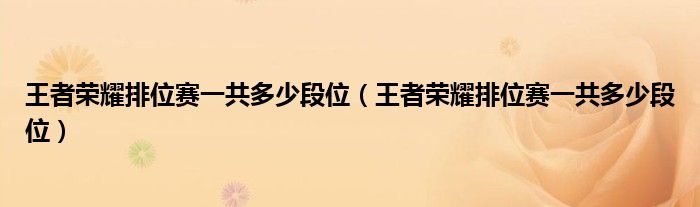 大家好,小生來(lái)為大家講解下。王者榮耀排位賽一共多少段位,王者榮耀排位賽一共多少段位很多人還不知道,現(xiàn)在讓我們一起來(lái)看看吧!