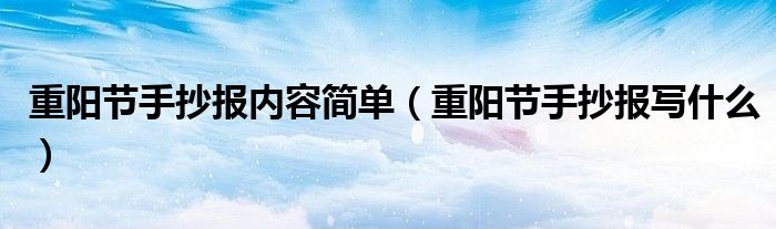 大家好,伊人來為大家解答以上問題。重陽節(jié)手抄報內(nèi)容簡單,重陽節(jié)手抄報寫什么很多人還不知道,現(xiàn)在讓我們一起來看看吧!