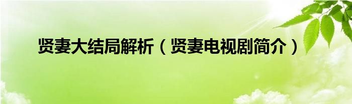 大家好,伊人來為大家解答以上問題。賢妻大結(jié)局解析,賢妻電視劇簡介很多人還不知道,現(xiàn)在讓我們一起來看看吧!