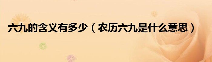 大家好,小生來為大家講解下。六九的含義有多少,農(nóng)歷六九是什么意思很多人還不知道,現(xiàn)在讓我們一起來看看吧!