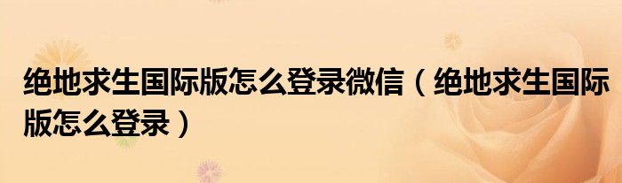 大家好,小生來(lái)為大家講解下。絕地求生國(guó)際版怎么登錄微信,絕地求生國(guó)際版怎么登錄很多人還不知道,現(xiàn)在讓我們一起來(lái)看看吧!