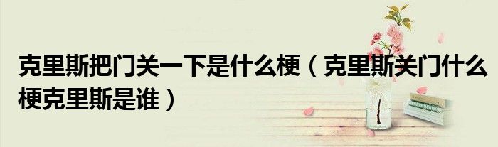 大家好,小生來為大家講解下??死锼拱验T關(guān)一下是什么梗,克里斯關(guān)門什么??死锼故钦l很多人還不知道,現(xiàn)在讓我們一起來看看吧!