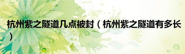 大家好,小生來(lái)為大家講解下。杭州紫之隧道幾點(diǎn)被封,杭州紫之隧道有多長(zhǎng)很多人還不知道,現(xiàn)在讓我們一起來(lái)看看吧!