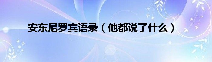 大家好,伊人來為大家解答以上問題。安東尼羅賓語錄,他都說了什么很多人還不知道,現(xiàn)在讓我們一起來看看吧!