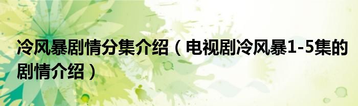 大家好,伊人來為大家解答以上問題。冷風(fēng)暴劇情分集介紹,電視劇冷風(fēng)暴1-5集的劇情介紹很多人還不知道,現(xiàn)在讓我們一起來看看吧!