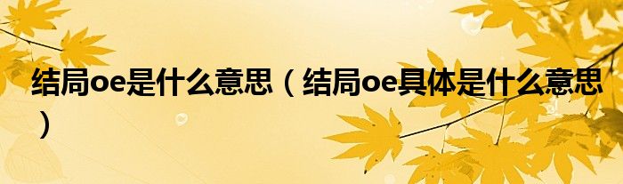 大家好,伊人來(lái)為大家解答以上問(wèn)題。結(jié)局oe是什么意思,結(jié)局oe具體是什么意思很多人還不知道,現(xiàn)在讓我們一起來(lái)看看吧!