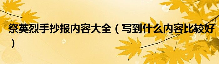 大家好,伊人來為大家解答以上問題。祭英烈手抄報內(nèi)容大全,寫到什么內(nèi)容比較好很多人還不知道,現(xiàn)在讓我們一起來看看吧!