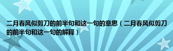 大家好,伊人來為大家解答以上問題。二月春風(fēng)似剪刀的前半句和這一句的意思,二月春風(fēng)似剪刀的前半句和這一句的解釋很多人還不知道,現(xiàn)在讓我們一起來看看吧!