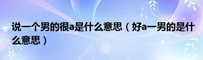 大家好,小生來為大家講解下。說一個(gè)男的很a是什么意思,好a一男的是什么意思很多人還不知道,現(xiàn)在讓我們一起來看看吧!