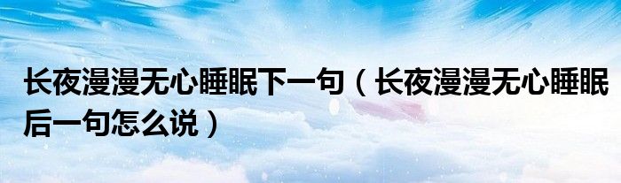 大家好,伊人來(lái)為大家解答以上問(wèn)題。長(zhǎng)夜漫漫無(wú)心睡眠下一句,長(zhǎng)夜漫漫無(wú)心睡眠后一句怎么說(shuō)很多人還不知道,現(xiàn)在讓我們一起來(lái)看看吧!