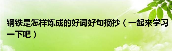 大家好,伊人來為大家解答以上問題。鋼鐵是怎樣煉成的好詞好句摘抄,一起來學(xué)習(xí)一下吧很多人還不知道,現(xiàn)在讓我們一起來看看吧!