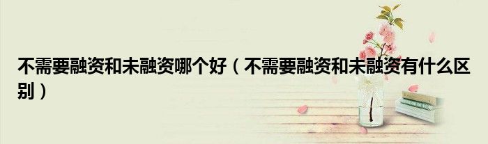 大家好,小生來(lái)為大家講解下。不需要融資和未融資哪個(gè)好,不需要融資和未融資有什么區(qū)別很多人還不知道,現(xiàn)在讓我們一起來(lái)看看吧!