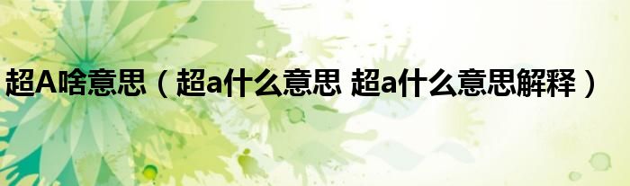 大家好,小生來為大家講解下。超A啥意思,超a什么意思 超a什么意思解釋很多人還不知道,現(xiàn)在讓我們一起來看看吧!