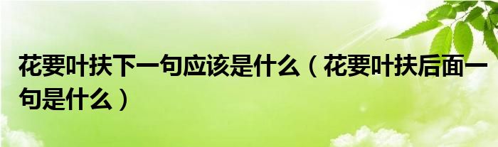 大家好,小生來(lái)為大家講解下?;ㄒ~扶下一句應(yīng)該是什么,花要葉扶后面一句是什么很多人還不知道,現(xiàn)在讓我們一起來(lái)看看吧!
