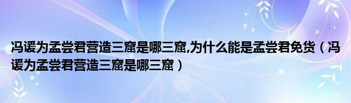 大家好,小生來為大家講解下。馮諼為孟嘗君營造三窟是哪三窟,為什么能是孟嘗君免貨,馮諼為孟嘗君營造三窟是哪三窟很多人還不知道,現(xiàn)在讓我們一起來看看吧!