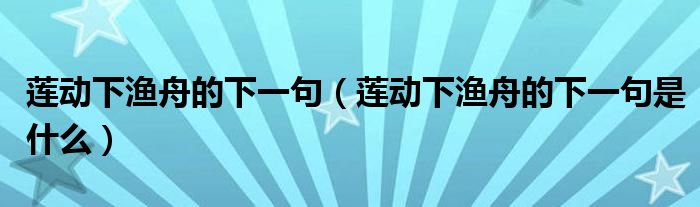 大家好,小生來為大家講解下。蓮動下漁舟的下一句,蓮動下漁舟的下一句是什么很多人還不知道,現(xiàn)在讓我們一起來看看吧!