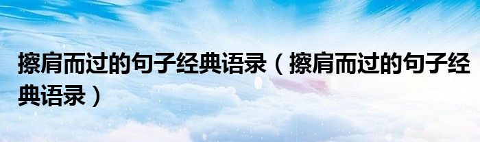 大家好,小生來為大家講解下。擦肩而過的句子經(jīng)典語錄,擦肩而過的句子經(jīng)典語錄很多人還不知道,現(xiàn)在讓我們一起來看看吧!