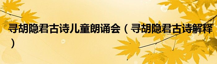 大家好,小生來為大家講解下。尋胡隱君古詩兒童朗誦會,尋胡隱君古詩解釋很多人還不知道,現(xiàn)在讓我們一起來看看吧!