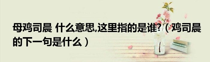 大家好,小生來為大家講解下。母雞司晨 什么意思,這里指的是誰?,雞司晨的下一句是什么很多人還不知道,現(xiàn)在讓我們一起來看看吧!
