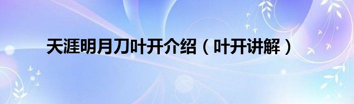1、月刃葉開已經(jīng)是一個陌生人了,而且是一個超越的世界。這是古龍的原話。在《天涯岳明島》中,葉開并沒有出現(xiàn),但書中的許多人物經(jīng)常談到葉開。