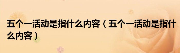 大家好,小生來為大家講解下。五個(gè)一活動(dòng)是指什么內(nèi)容,五個(gè)一活動(dòng)是指什么內(nèi)容很多人還不知道,現(xiàn)在讓我們一起來看看吧!