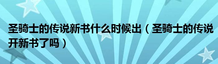大家好,小生來(lái)為大家講解下。圣騎士的傳說(shuō)新書(shū)什么時(shí)候出,圣騎士的傳說(shuō)開(kāi)新書(shū)了嗎很多人還不知道,現(xiàn)在讓我們一起來(lái)看看吧!