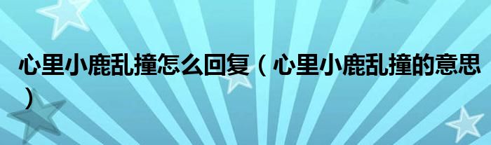 大家好,小生來為大家講解下。心里小鹿亂撞怎么回復(fù),心里小鹿亂撞的意思很多人還不知道,現(xiàn)在讓我們一起來看看吧!