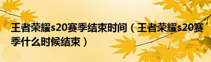 大家好,伊人來(lái)為大家解答以上問(wèn)題。王者榮耀s20賽季結(jié)束時(shí)間,王者榮耀s20賽季什么時(shí)候結(jié)束很多人還不知道,現(xiàn)在讓我們一起來(lái)看看吧!