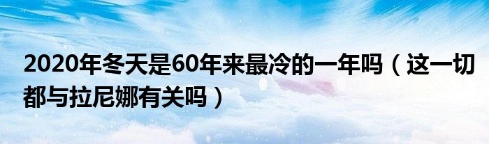 大家好,伊人來為大家解答以上問題。2020年冬天是60年來最冷的一年嗎,這一切都與拉尼娜有關(guān)嗎很多人還不知道,現(xiàn)在讓我們一起來看看吧!