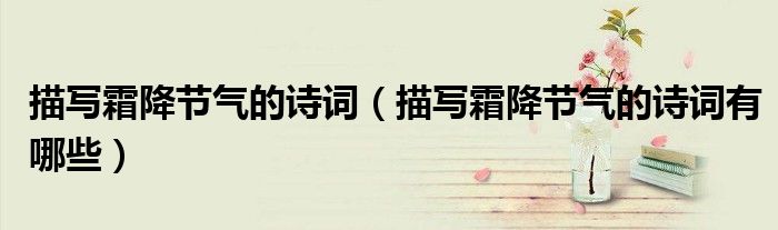 大家好,伊人來為大家解答以上問題。描寫霜降節(jié)氣的詩詞,描寫霜降節(jié)氣的詩詞有哪些很多人還不知道,現(xiàn)在讓我們一起來看看吧!