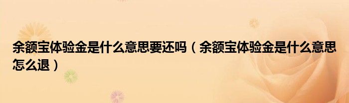 大家好,小生來(lái)為大家講解下。余額寶體驗(yàn)金是什么意思要還嗎,余額寶體驗(yàn)金是什么意思怎么退很多人還不知道,現(xiàn)在讓我們一起來(lái)看看吧!