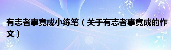 大家好,伊人來(lái)為大家解答以上問(wèn)題。有志者事竟成小練筆,關(guān)于有志者事竟成的作文很多人還不知道,現(xiàn)在讓我們一起來(lái)看看吧!