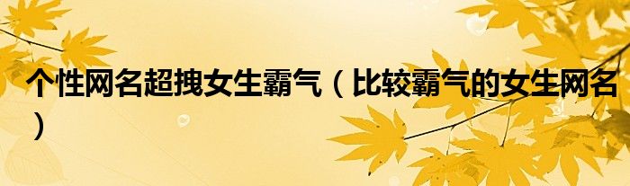 大家好,伊人來為大家解答以上問題。個性網(wǎng)名超拽女生霸氣,比較霸氣的女生網(wǎng)名很多人還不知道,現(xiàn)在讓我們一起來看看吧!