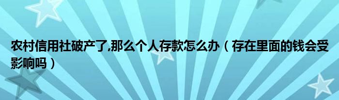 大家好,伊人來為大家解答以上問題。農村信用社破產了,那么個人存款怎么辦,存在里面的錢會受影響嗎很多人還不知道,現在讓我們一起來看看吧!