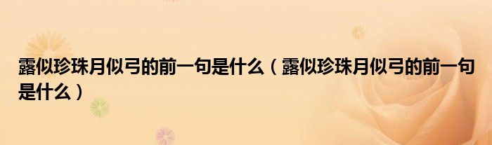大家好,小生來為大家講解下。露似珍珠月似弓的前一句是什么,露似珍珠月似弓的前一句是什么很多人還不知道,現(xiàn)在讓我們一起來看看吧!