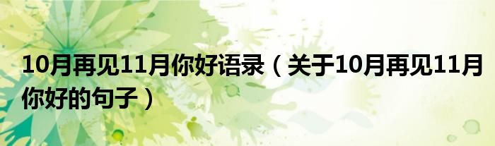 大家好,伊人來為大家解答以上問題。10月再見11月你好語錄,關(guān)于10月再見11月你好的句子很多人還不知道,現(xiàn)在讓我們一起來看看吧!
