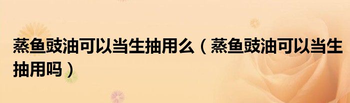 大家好,小生來為大家講解下。蒸魚豉油可以當生抽用么,蒸魚豉油可以當生抽用嗎很多人還不知道,現在讓我們一起來看看吧!