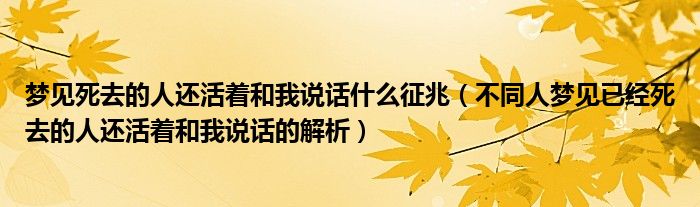 大家好,伊人來為大家解答以上問題。夢(mèng)見死去的人還活著和我說話什么征兆,不同人夢(mèng)見已經(jīng)死去的人還活著和我說話的解析很多人還不知道,現(xiàn)在讓我們一起來看看吧!