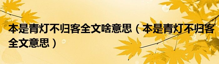 大家好,小生來(lái)為大家講解下。本是青燈不歸客全文啥意思,本是青燈不歸客全文意思很多人還不知道,現(xiàn)在讓我們一起來(lái)看看吧!
