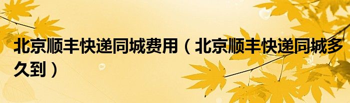 大家好,小生來為大家講解下。北京順豐快遞同城費(fèi)用,北京順豐快遞同城多久到很多人還不知道,現(xiàn)在讓我們一起來看看吧!