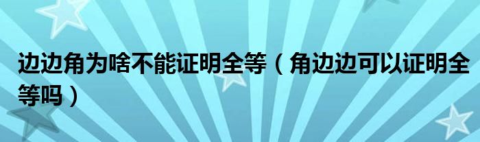大家好,小生來(lái)為大家講解下。邊邊角為啥不能證明全等,角邊邊可以證明全等嗎很多人還不知道,現(xiàn)在讓我們一起來(lái)看看吧!