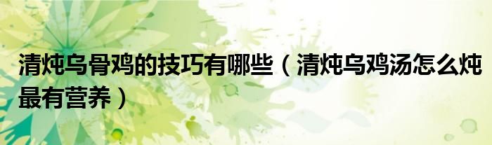 大家好,伊人來(lái)為大家解答以上問(wèn)題。清燉烏骨雞的技巧有哪些,清燉烏雞湯怎么燉最有營(yíng)養(yǎng)很多人還不知道,現(xiàn)在讓我們一起來(lái)看看吧!
