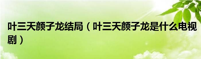 大家好,小生來為大家講解下。葉三天顏子龍結(jié)局,葉三天顏子龍是什么電視劇很多人還不知道,現(xiàn)在讓我們一起來看看吧!