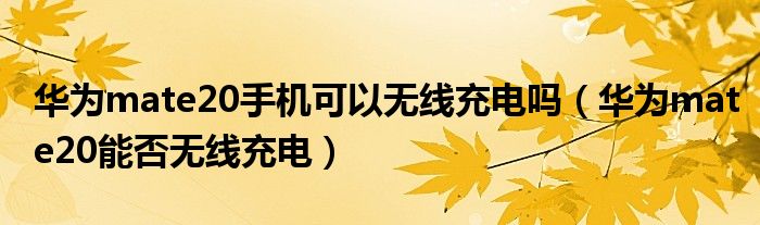 大家好,小生來為大家講解下。華為mate20手機可以無線充電嗎,華為mate20能否無線充電很多人還不知道,現(xiàn)在讓我們一起來看看吧!