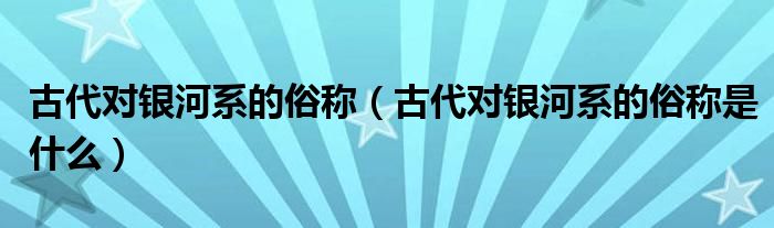 大家好,小生來為大家講解下。古代對銀河系的俗稱,古代對銀河系的俗稱是什么很多人還不知道,現在讓我們一起來看看吧!