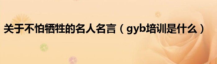 大家好,小生來為大家講解下。關(guān)于不怕犧牲的名人名言,gyb培訓是什么很多人還不知道,現(xiàn)在讓我們一起來看看吧!